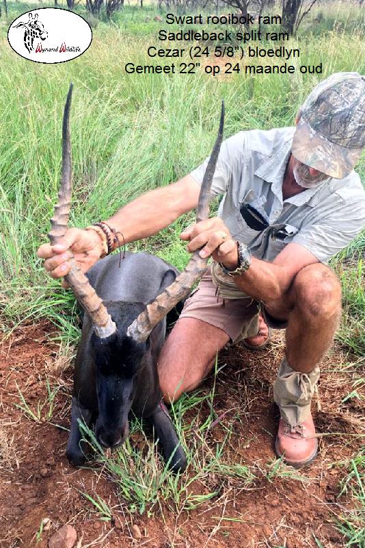 The mother of this ram is a black impala ewe. She comes from a camp that delivers 22" to 23" black rams.
